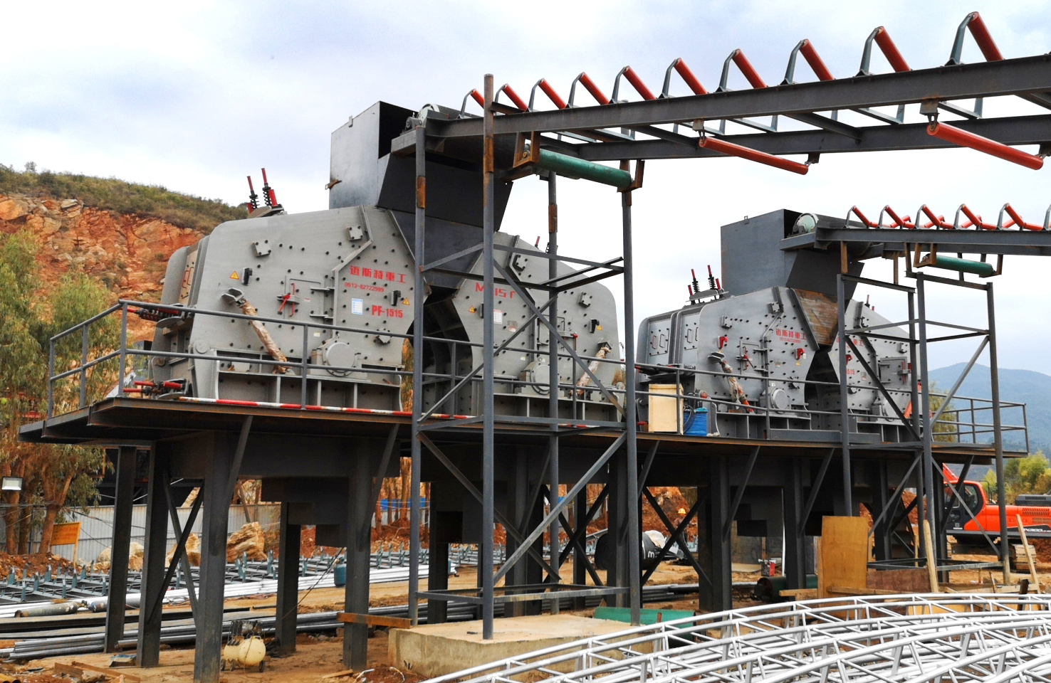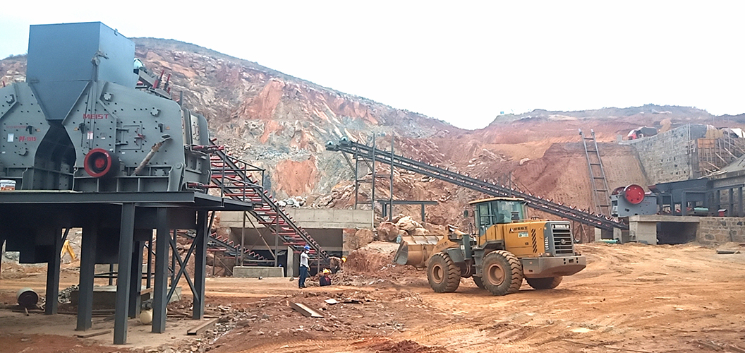 3、緩沖料倉的粗料均勻送到4臺反擊式破碎機(jī)進(jìn)行中碎;