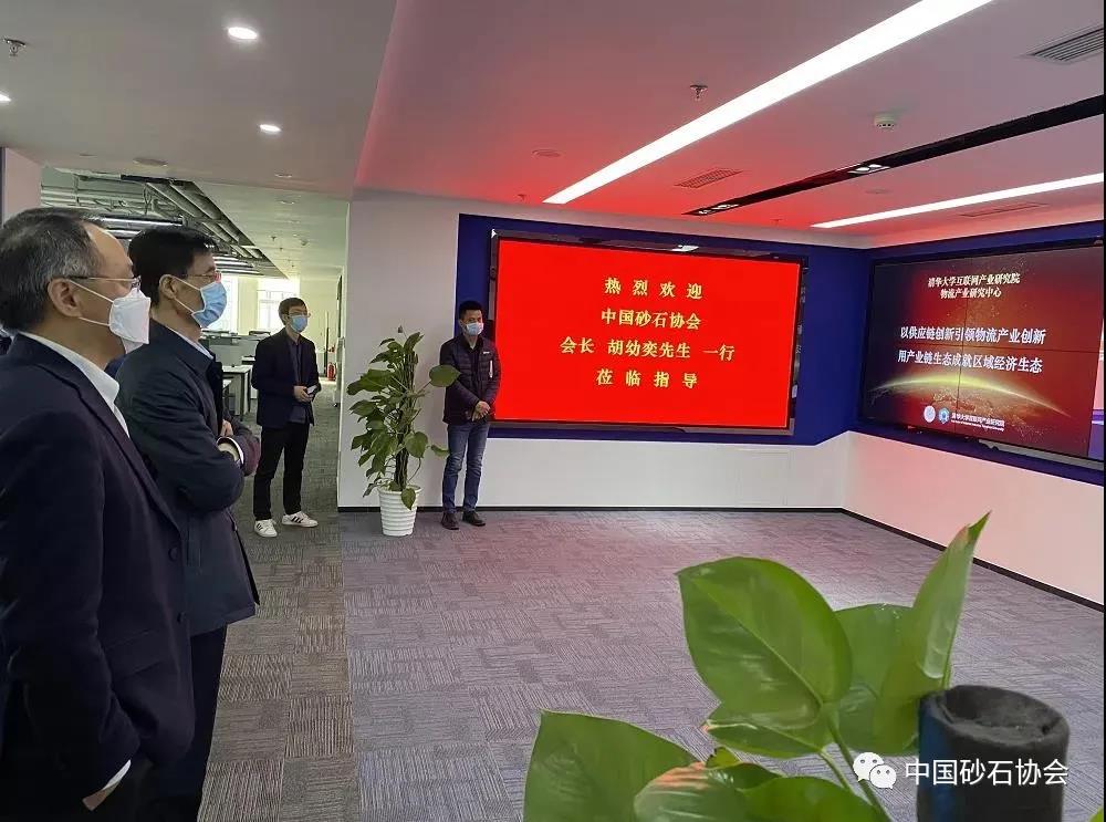 2020年4月10日,應清華大學互聯網產業研究院和京鐵物流有限公司邀請,中國砂石協會胡幼奕會長一行到清華大學互聯網產業研究院共同探討砂石產業鏈增值服務。