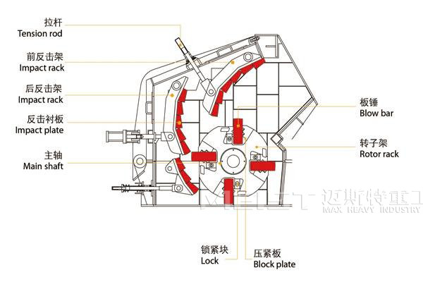 2、板錘固定裝置采用獨(dú)特的鎖緊系統(tǒng),使板錘可靠性更好,更換方便快捷。