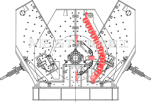 ★轉子兩側有對稱可調反擊架,能保證出料粒度,轉子直徑大,板錘錘柄長,細料比例高≤5mm占80%;